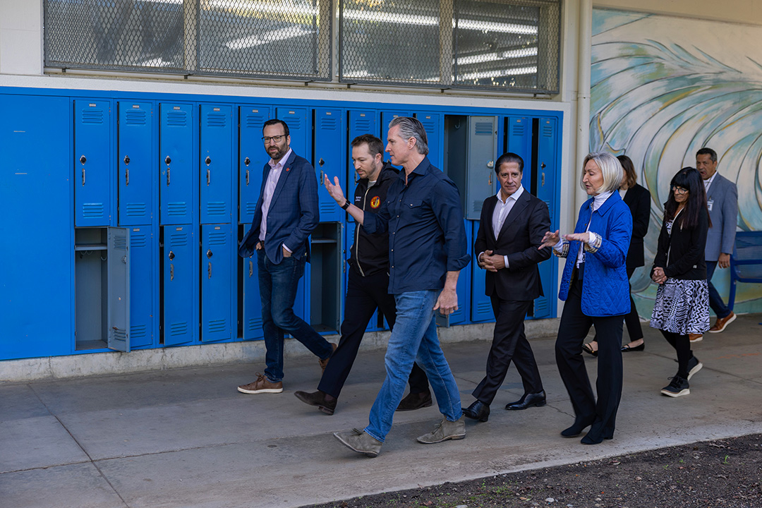 At Palisades Charter High School, the Governor and First Partner viewed areas damaged by the fires, saw rebuilt and restored facilities, and heard directly from educators and facilities staff about the steps taken to ensure a safe, timely return for students and staff. The Governor and First Partner were joined by State Senator Ben Allen, Los Angeles Unified School District (LAUSD) Board Member for District 4 Nick Melvoin, and Superintendent Alberto Carvalho, and Dr. Pam Magee, Executive Director and Principal.