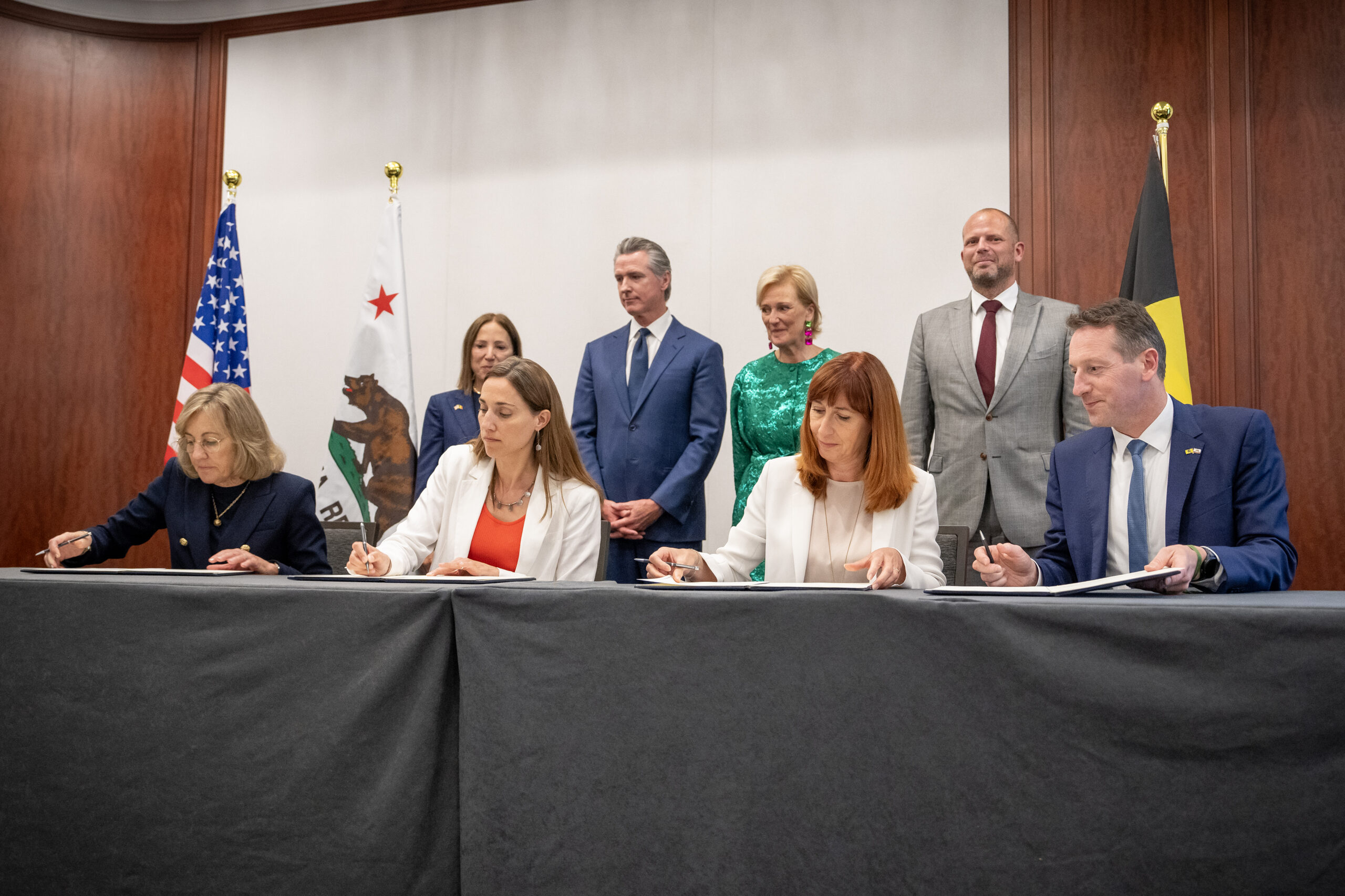 The two delegations held a bilateral meeting that focused on the innovation economy, clean energy and opportunities to advance mutually important sectors like aerospace and semiconductors. California and Belgium signed a Memorandum of Understanding (MOU) to facilitate trade, entrepreneurship, business engagement, and strengthen the innovation ecosystem. Text of the MOU is available here.