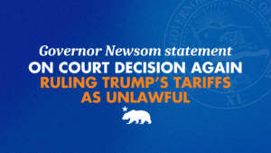 Read more about Governor Newsom issues statement on court decision AGAIN ruling Trump’s tariffs as unlawful