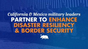 News California and Mexico military leaders partner to enhance disaster resiliency and border security What you need to know: California and Mexico enter a partnership to enhance our shared military expertise and protect our communities. SACRAMENTO – Reiterating the... Read MoreRead more about California and Mexico military leaders partner to enhance disaster resiliency and border security