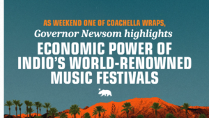News As weekend one of Coachella wraps, Governor Newsom highlights economic power of Indio’s world-renowned music festivals What you need to know: The first weekend of the Coachella Music Festival kicked off on Friday, welcoming thousands of fans from around the... Read MoreRead more about As weekend one of Coachella wraps, Governor Newsom highlights economic power of Indio’s world-renowned music festivals
